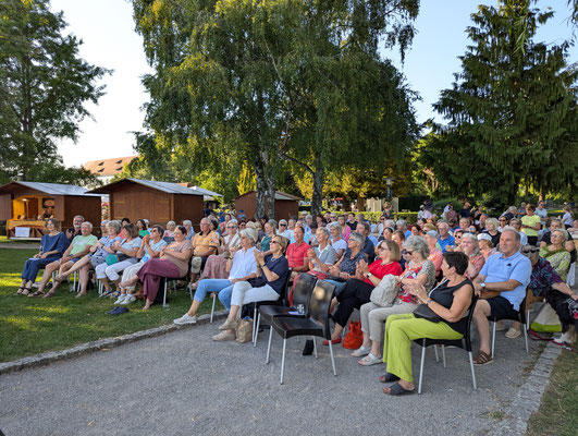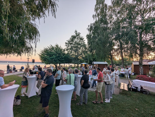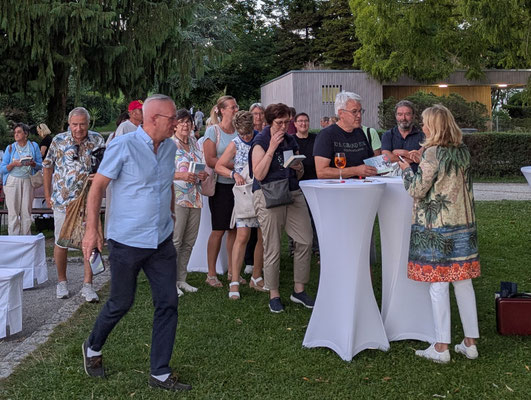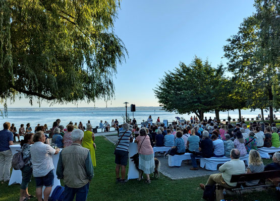 neben mir eine wunderschöne Trauerweide, hinter mir der weite Bodensee, vor mir ein interessiertes Publikum, irgendwann saßen sie auch auf einem Mäuerchen hinter meinem Rücken, dazu nette Gespräche beim anschließenden Signieren.