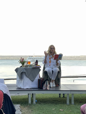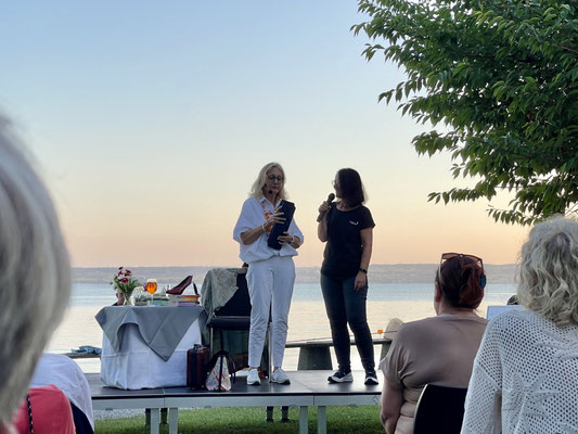 Die Idee hatten Alexandra Graf, Martin Kramer und Lisa Niederer von der Rorschacher Buchhandlung "WörterSpiel" und siehe da, das Bodensee-Schiff war bis auf den letzten Platz besetzt und alle fanden es mega - ich auch. Und zudem durften wir eine wunderschöne Fahrt über den See mit Blick auf den Rheinspitz, Bregenz und Lindau genießen - und darüber hinaus überall hin, wohin das Auge schweifen mochte.